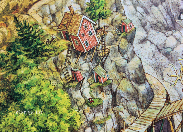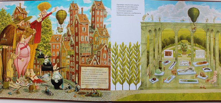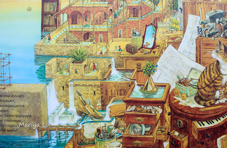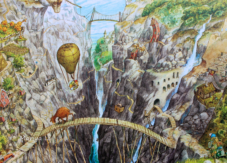Нурдквист нарисовал невероятный мир, где пространство переменчиво и переливается из одной плоскости в другую, где маленькое становится большим и наоборот, а нереальное реальным. Каждый сантиметр иллюстрации таит в себе новые открытия и чудеса.