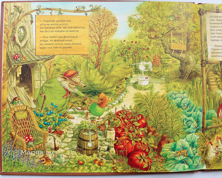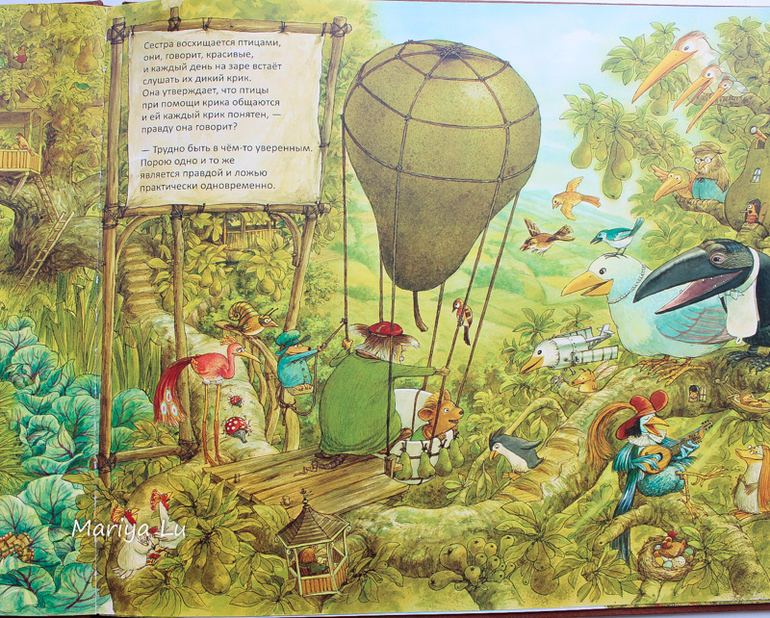 Четырехлетний Никитос впечатлился размерами книги, но к картинкам остался равнодушен и к стихам тоже. Ну, нашли мы крыску на каждом развороте и.... все. Собственно, он только и хотел искать ту самую сестренку. Я же хотела кричать: "Сын, подожди, посмотри, что за нелепица, что за абсурд, ты такое когда-нибудь видел? это же ШЕДЕВР" но нет,книга была просмотрена и закрыта.....