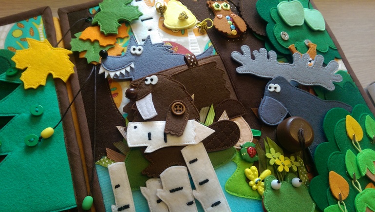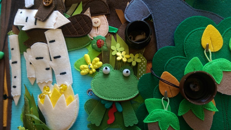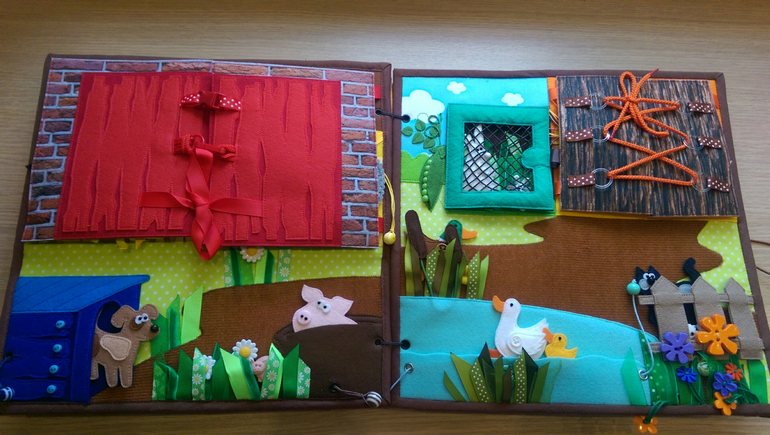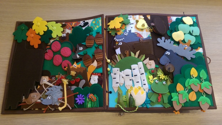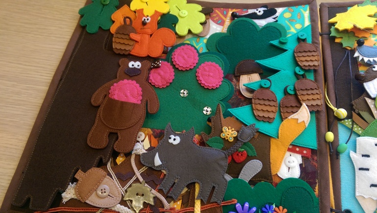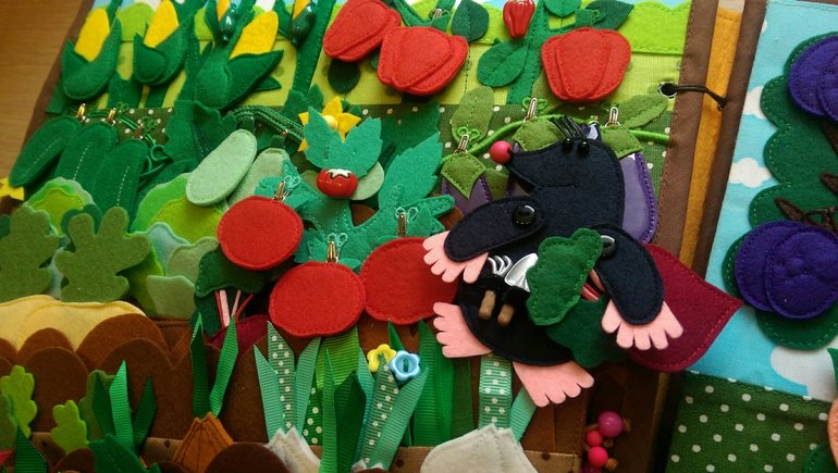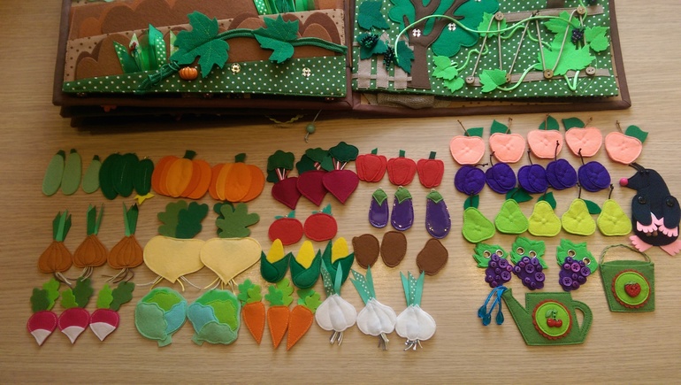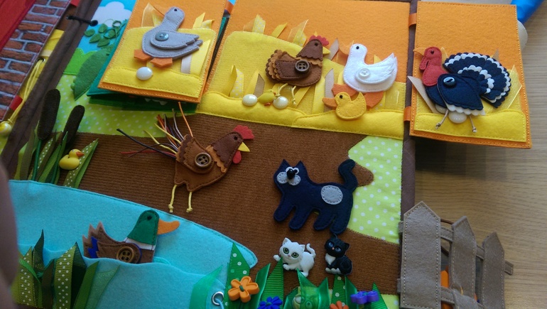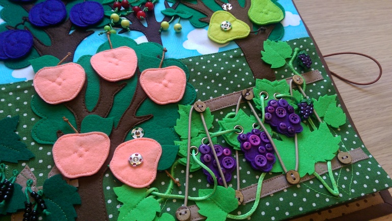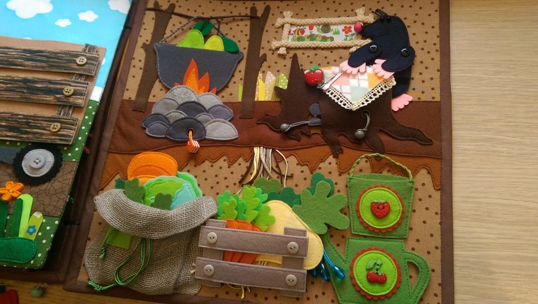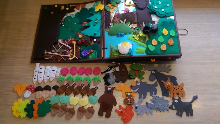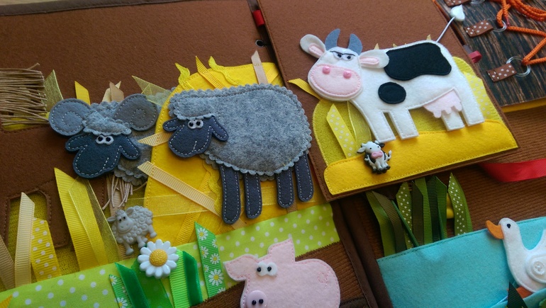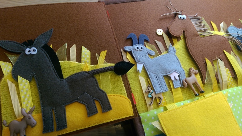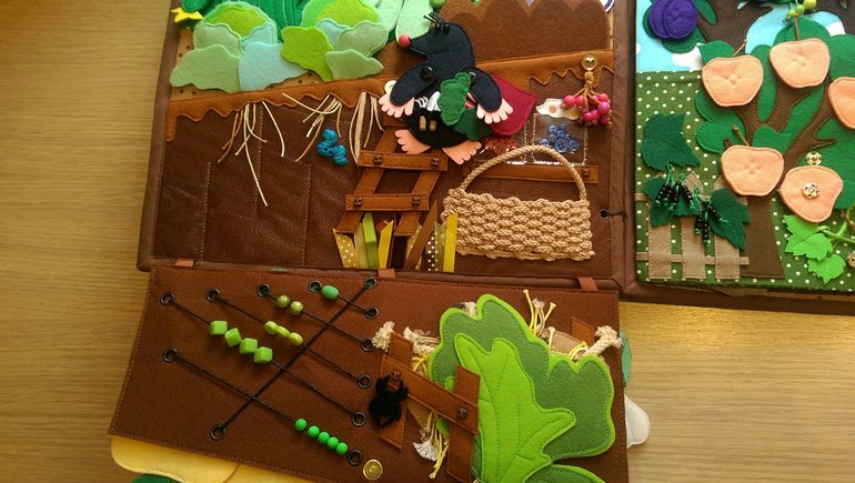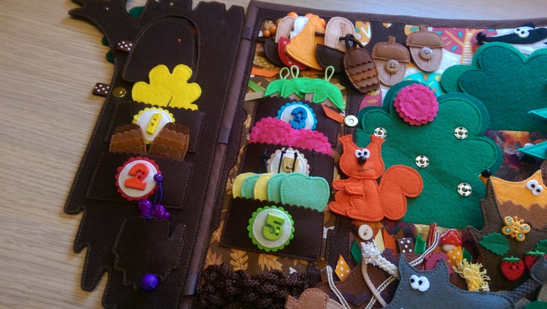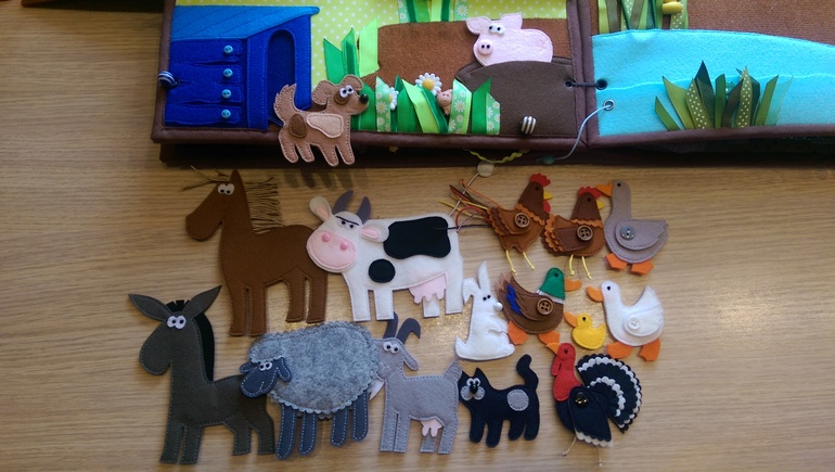 Лесные животные, домашние и их жизнь, игра "мама и малыш", изучение счета до 5, сад и огород, а также различные застежки, шнуровка, задания и многое другое.