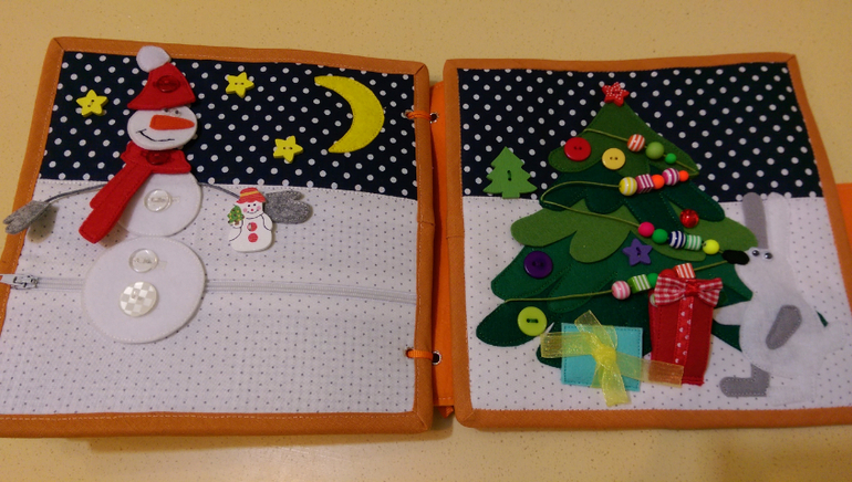 4) "зимний". Понятие маленький-большой(снеговик на пуговицах). Находим подарки под елкой.