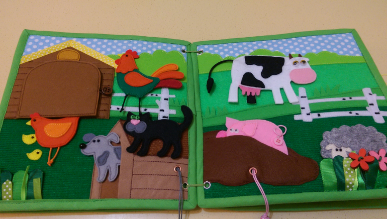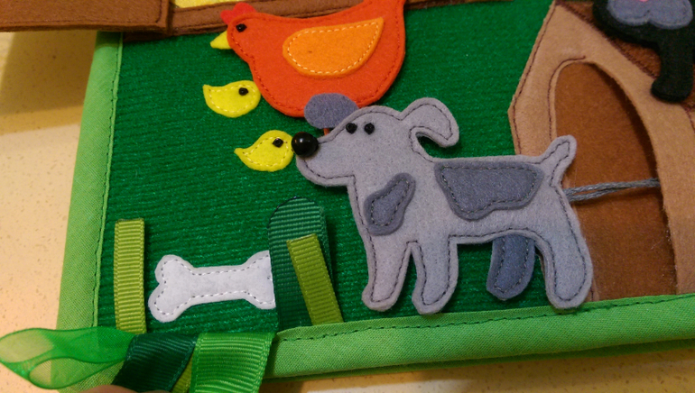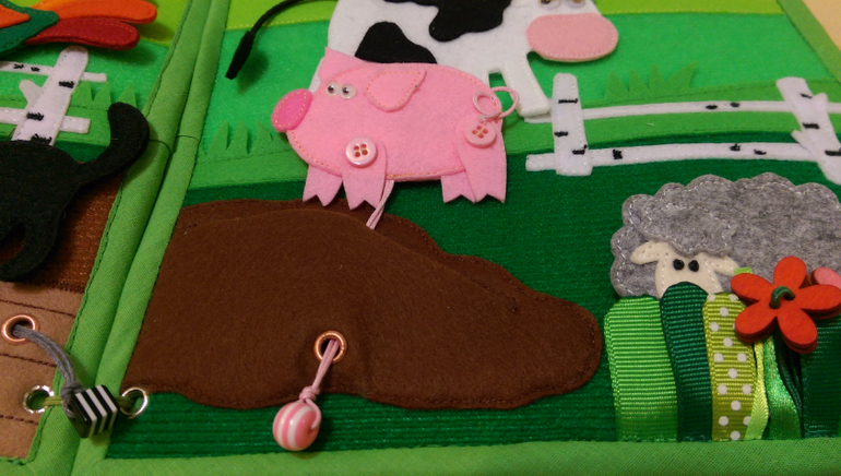 Некоторые животные съемные, некоторые перетягиваем, а в курятнике(на пуговице) куры высиживают яйца)).