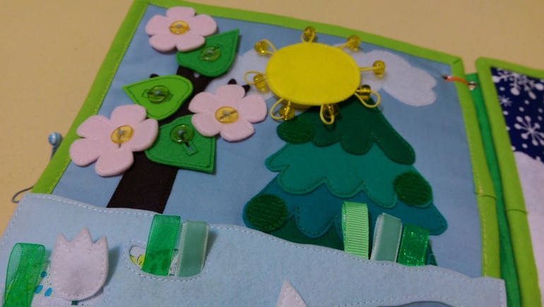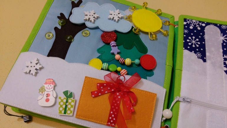Зима. Наряжаем елку, игрушки в коробке, солнышко и снежная тучка на липучке.