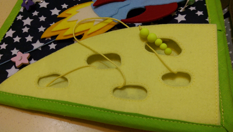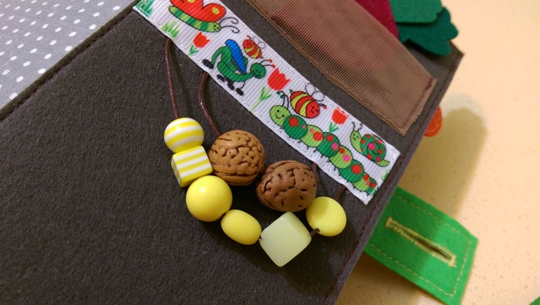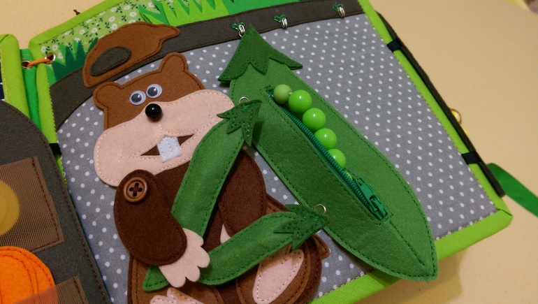 Горошины в большом на резинке, можно подергать, а в маленьких прощупываем, пытаемся сосчитать.