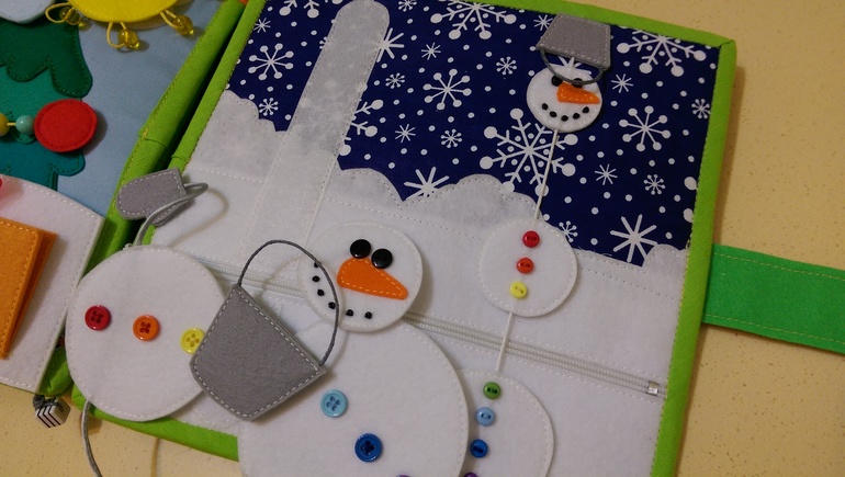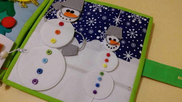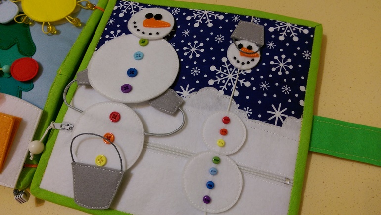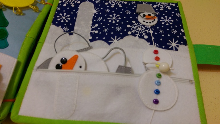 И последняя страница, любимые снеговики! Большой на липучке, а маленького собираем в кучу)))