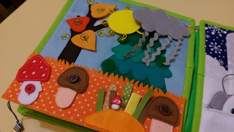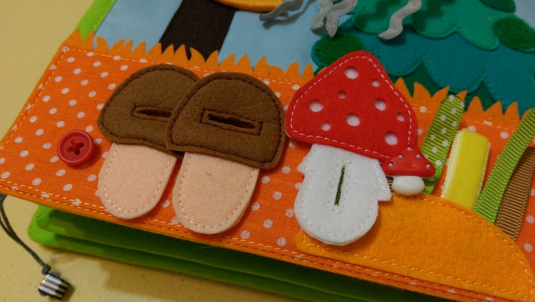 Дождевая тучка, листочки и грибы на пуговицах.