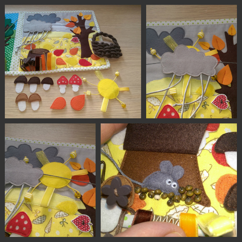 ...и, самое золотое время года- осень! Желтеет и опадает листва с деревьев, погода все мрачнее, серые тучи, дожди, солнце спряталось. Собираем последние грибы (съедобное-несъедобное) в корзину. Мышь готовит запасы на зиму.