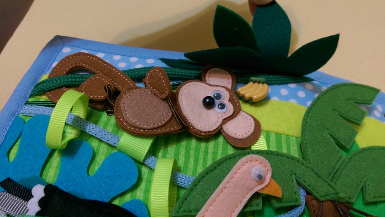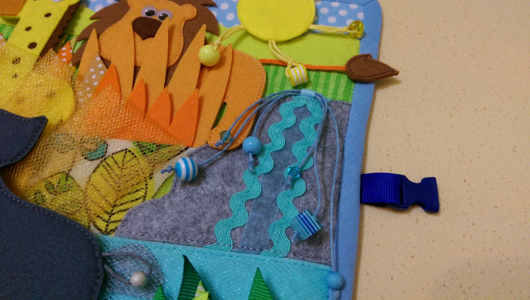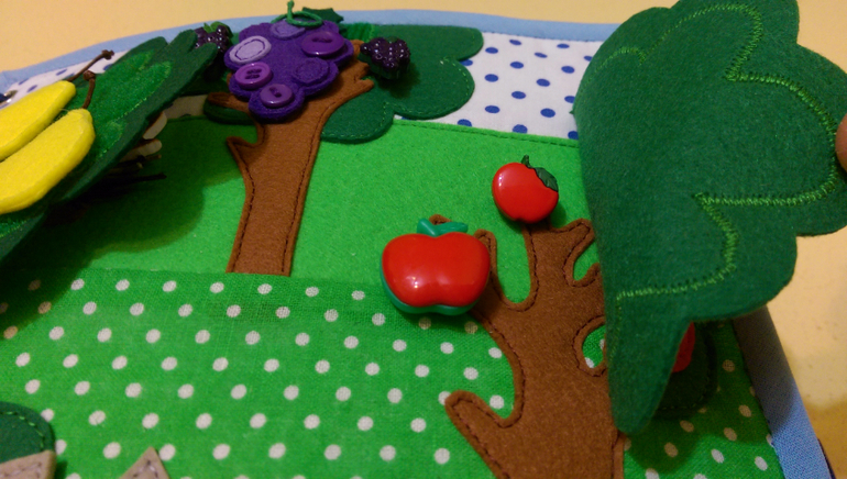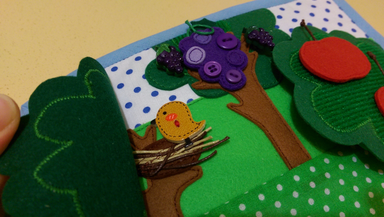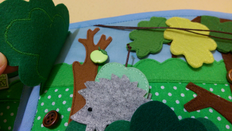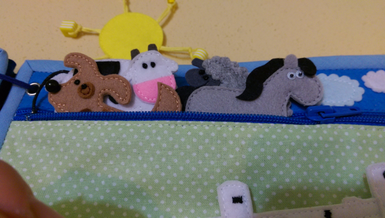 Солнышко тоже съемное, крепится на липучке, на всех страницах с животными.