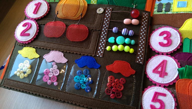 Погреб с запасами)). Учим счет до 5, раскладываем в кармашки овощи , фрукты.
