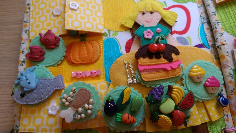 Корм для животных в тарелках разной формы(на липучке) раскладываем правильно.