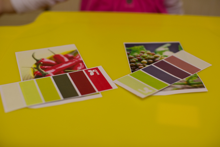 15. Цветовосприятие - Распечатайте готовые палитры, отрежьте полоску с цветами от картинки, предложите ребенку найти и соединить палитры цветов, соответствующие рисункам. Можно использовать любую игру с цветами, например, сортировать любые предметы, игрушки, детали конструкторов, крышки и пр. по цветам.