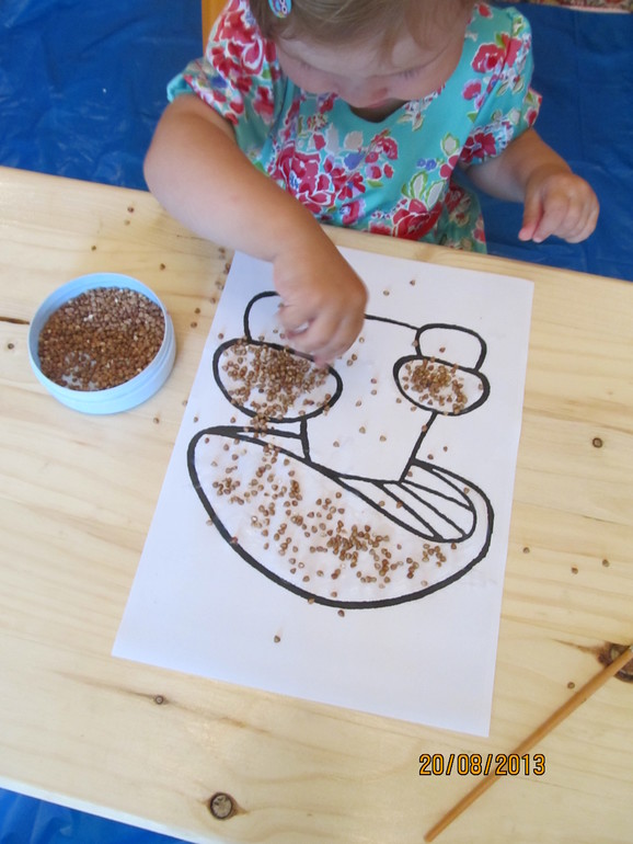 25. Творчество Аппликации - любая аппликация на любом рисунке, коробке, ткани и т.д. или в пособии для развития. Используйте любые материалы - бумагу, крупы, сухие листья, перышки, вату, бусины, камешки, фольгу, наклейки.