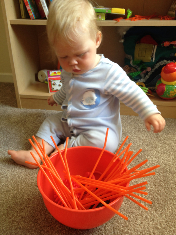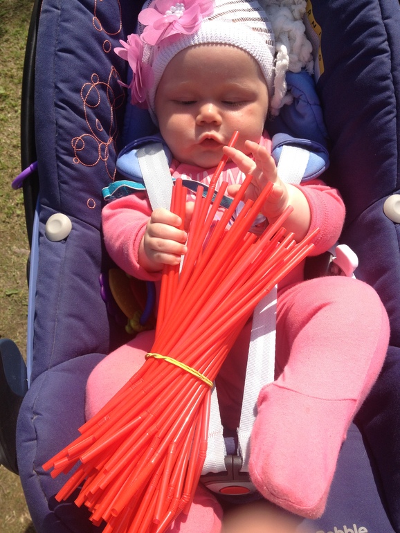 3. Соломки - очень долго может перебирать, я стягиваю резинкой, дочка вытягивает их по одной, переламывает соломки, крутит, вертит.