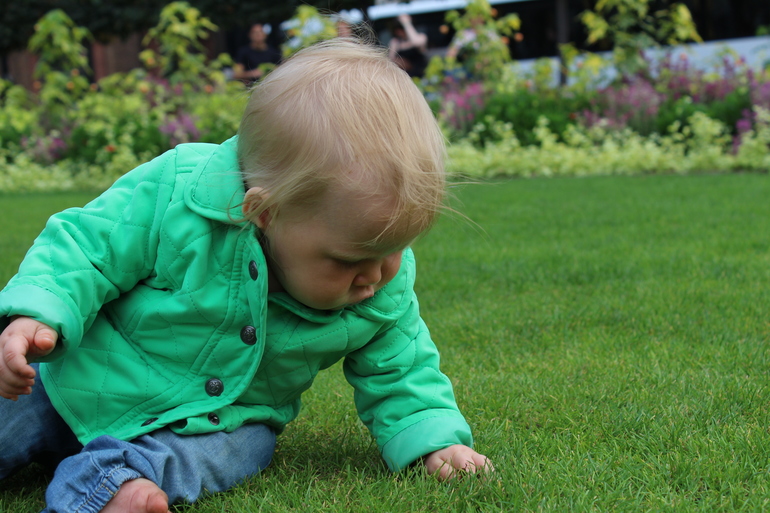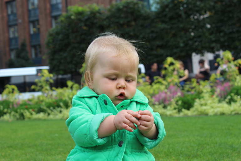 3. Разрешаю дочке ползать по траве в парках, когда тепло было