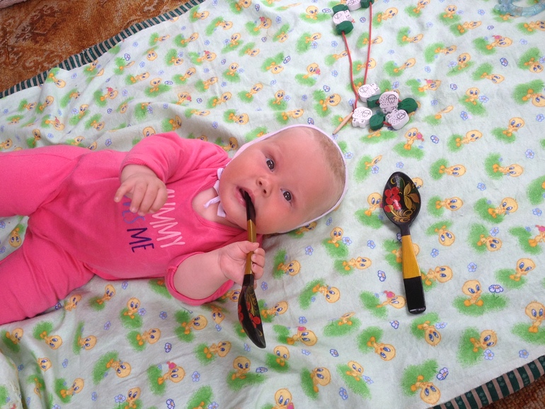 4. Сама, конечно, играет. Игрушек у нас не так много, как мне кажется. До 7,5 мес много на коврике развивающем играла.