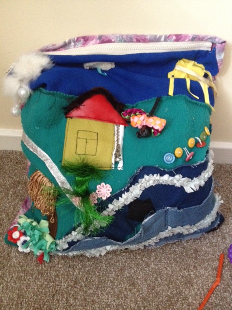 1. Развивающая подушка - в ателье мне сшили вот такую подушку, очень мне нравится. И дочке тоже! Разные текстуры, замочки, тесемки, пуговицы.