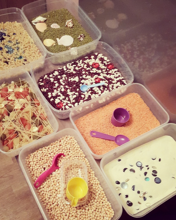 Тактильные радости: крашенная манка, самодельный песок и жвачка для рук!