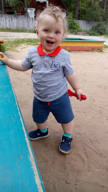 На прогулке играем в мяч - очень любит... И не дай Бог встретить кого-то с другим мячом - всё, истерика и рев :))) ,надо сразу такой же! Ещё наша любовь- лужи :) , плещется довольный, бывает садиться туда же, если не успею среагировать :)))