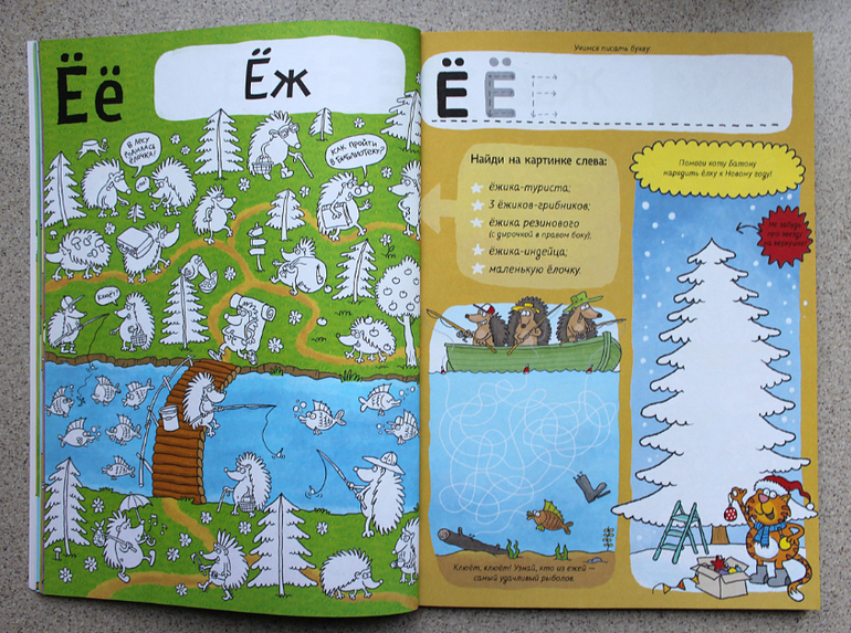 Хвостатая АБВГД-ейка от Александра Голубева скорее увеселительная, чем обучающая, для тех ребят, кто не хотят заниматься с буквами традиционными методами. Поэтому тут и шутки, и обводилки, и рисовалки, и буквоискалки, и еще множество веселых заданий.