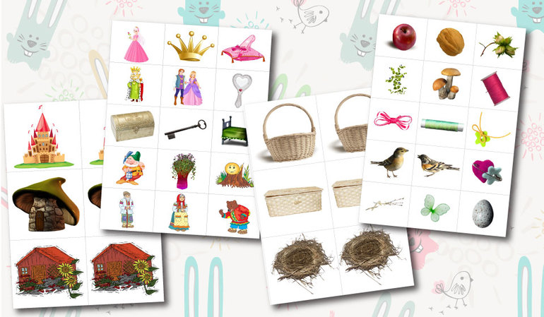 Картинки-пряталки - 2 листа А4 (6 парных изображений).