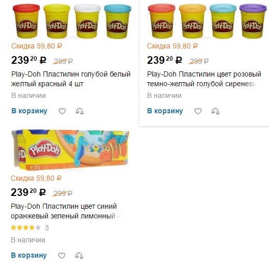 Озон радует акцией на пластилин Play Doh (набор из 4-х банок за 180 рублей)
