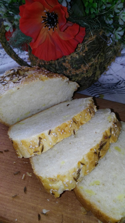 Из оставшегося теста сделала хлебушек, предварительно дала тесту подняться в форме.