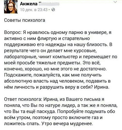Сегодня по телевизору доктор сказал, что для того, чтобы жить в мире с самим собой, нужно завершить дела, которые мы начали, тогда все мы получим больше спокойствия в нашей жизни.