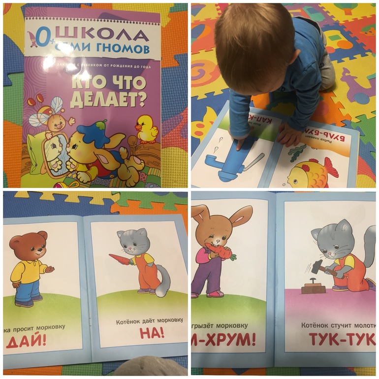 Речь: я произношу звуки и слоги, ребенок пробует повторить. Сегодня это звуки: аааа, уууу, оооо, ииии, ррррр и слоги: ма, па, та, ба, му. Очень рекомендую книжку для развития речи.