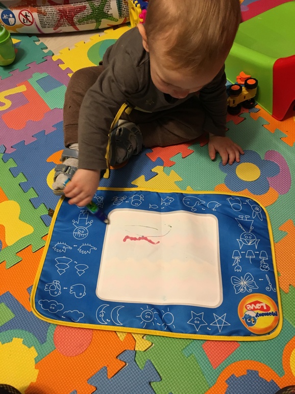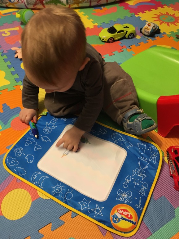 Творчество. Нашла выход по рисованию. Использовали набор, где маркер пишет с помощью воды. Пробовали рисовать.