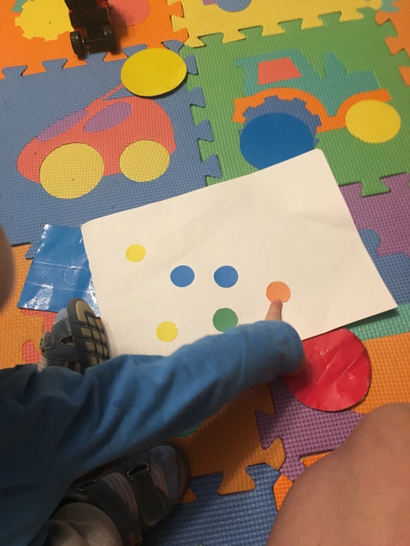 Творчество. Аппликация. Клеили кружочки. Я намазывала, малыш пальчиком прижимал как мог)
