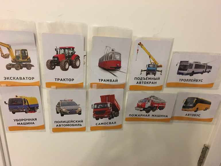 Окружающий мир. Сегодня самая любимая тема- транспорт. Карточки на двери и книжки по теме.