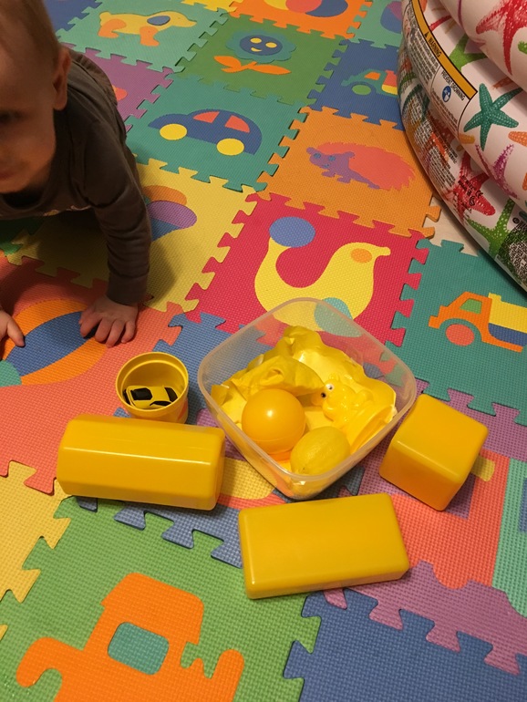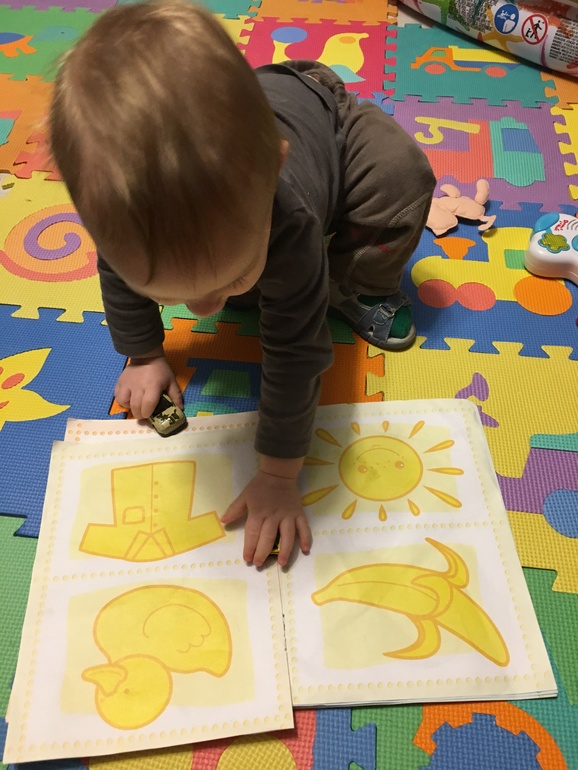 Цвет-желтый. Смотрели намкартинки из Ш7Г и потом искали предметы желтого цвета в квартире.