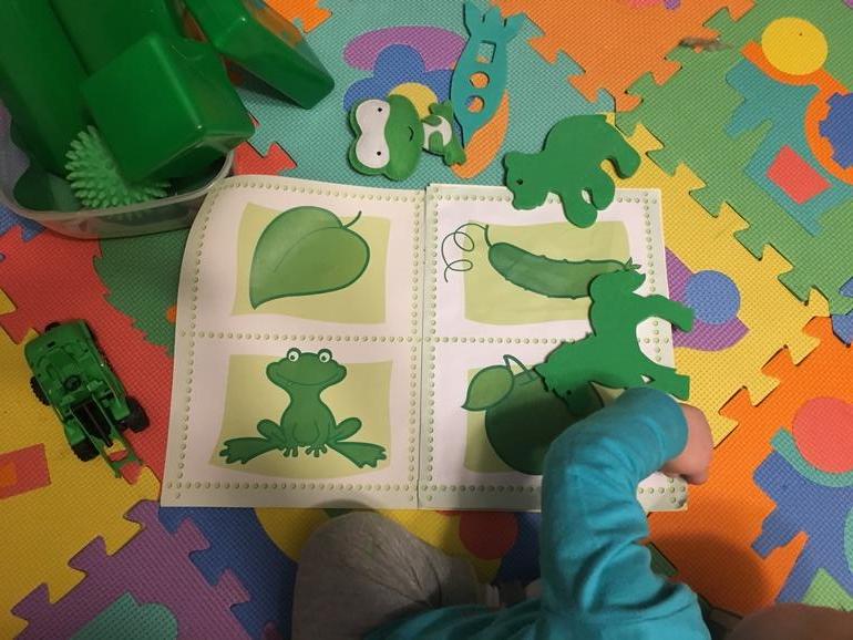 Цвет- зеленый. Смотрели книгу Ш7Г, искали предметы зеленого цвета в квартире.