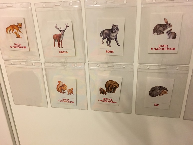 7. Окружающий мир: лесные животные. На двери детской у нас всегда висят разные карточки. Сегодня смотрели карточки с лесными животными. Точнее я специально не заставляла смотреть, она сам в процесс игр подходил, тыкал пальцем на животных, а я рассказывала. Потом прочитали книжку по теме и закрепили на фигурках.