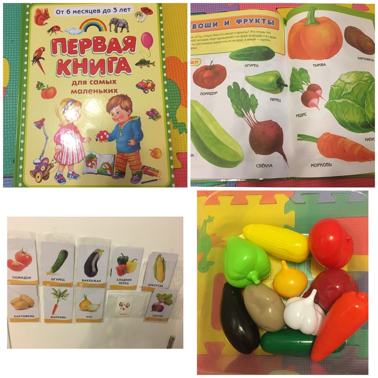 Окружающий мир: овощи. Карточки, книга по теме и фигуры овощей. Соотносили фигуры с карточками, искали овощи в книге.
