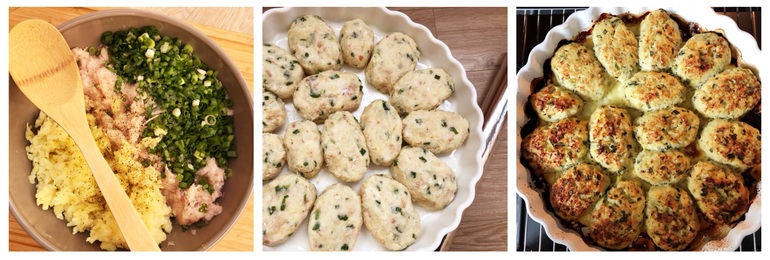 Филе и репчатый лук закинуть в блендер и нажать кнопку "старт". Картофель натереть на крупной терке. Эти 2 массы перемешать, добавив яйцо, сметану и специи.
