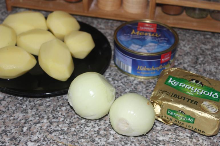 И пассерованый на сливочном масле лук, перчим, солим по вкусу.