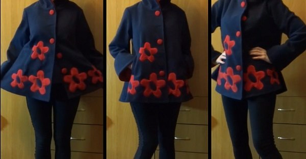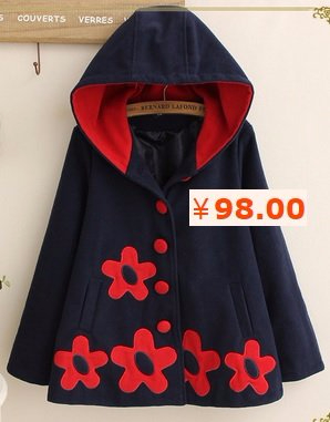 Синее пальто с красными цветочками, гляньте ссылку там есть цвет наоборот.
