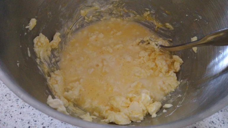 Мягкое масло взбить в крем до изменения цвета. И порциями ввести остывшую заварную массу.