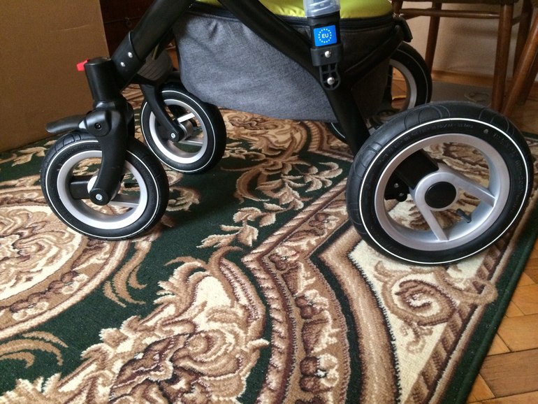1. БОЛЬШИЕ, УДОБНЫЕ КОЛЕСА. ОЧЕНЬ ХОРОШО ЕДУТ. РАДУЕТ АМОРТИЗАЦИЯ, КОЛЯСКА ИМЕЕТ ОЧЕНЬ МЯГКИЙ ХОД-ОТЛИЧНОЕ РЕШЕНИЕ ДЛЯ БЕЗДОРОЖЬЯ. А ЕЩЕ ОНИ КРАСИВЫЕ :)