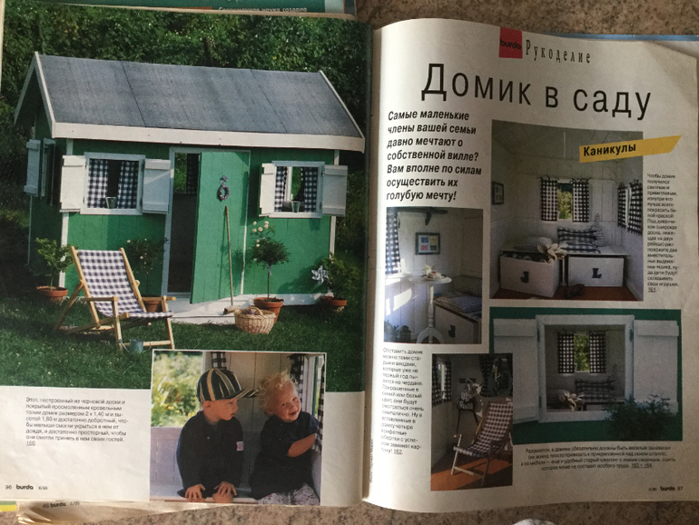 6/1996 Нет листа выкроек, но есть инструкция по изготовлению детского домика в саду, коляски для кукол и прочего
