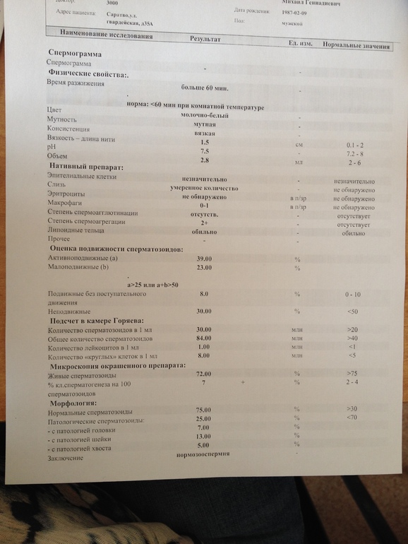 Дубль 3, пересдали спермограмму с морфологией уже, гляньте)