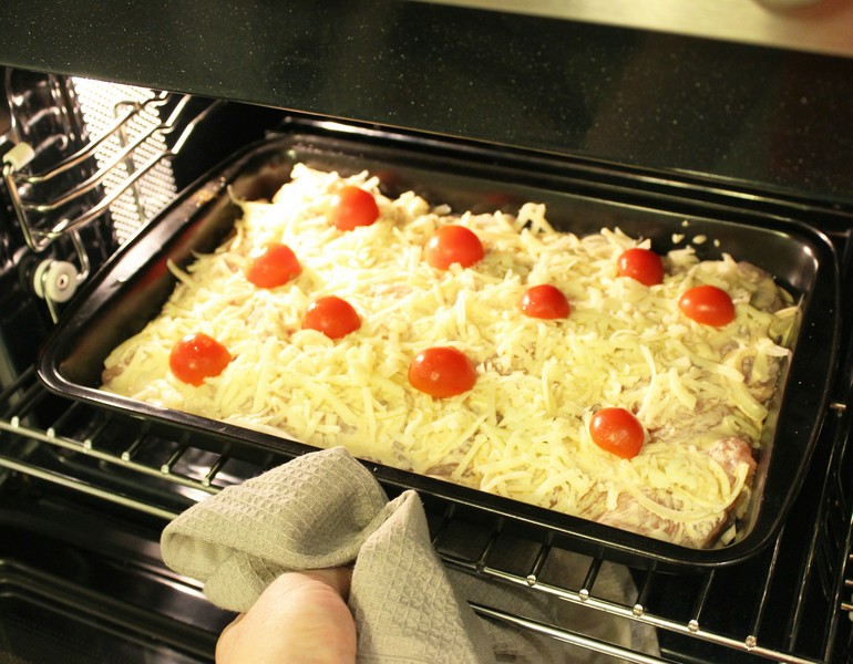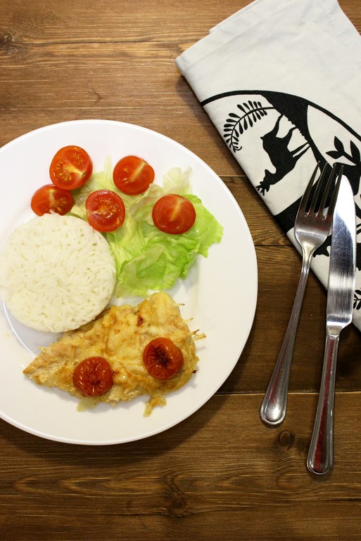 Для запекания я использую нежирный сыр (17%), блюдо получается вполне диетическим и годится для ужина. Приятного аппетита! 🍗🍚🍅