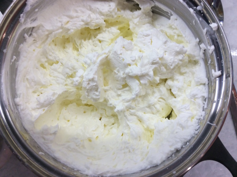 Смешайте обе массы лопаткой, вымешивая снизу вверх - благодаря этому вы получите нежный, воздушный, крепкий крем