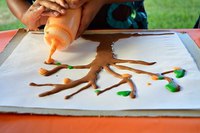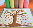 Наносить краску удобно на плотную бумагу или картон толстой кистью. Можно использовать вместо кисти ватные палочки.