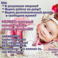 Мне постоянно приходили предложения о заработке через интернет, но я как и многие другие в это не верила. Поверила только тогда, когда познакомилась с моим спонсором в проекте "Твой доход в сети". Она рассказала мне подробно о работе, о том каких я могу достичь результатов. Я решилась, и теперь работаю в дружном коллективе, где все друг другу оказывают поддержку.