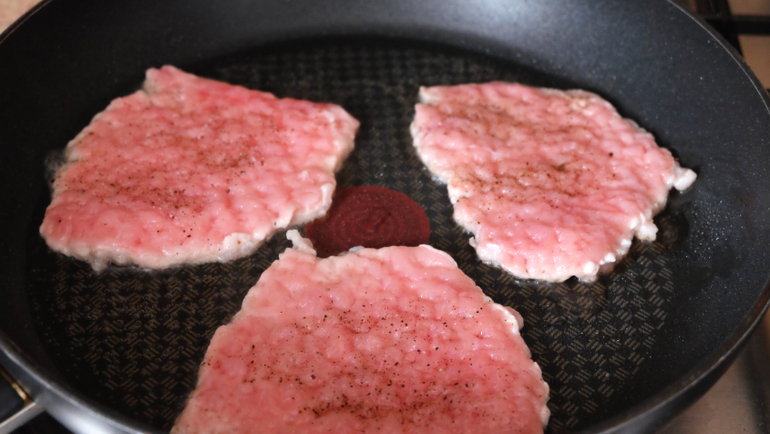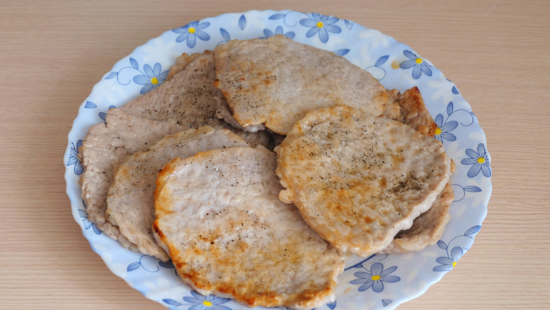 На сковороду добавить 1-2 столовые ложки растительного масла. Обжарить отбивные в течение 1-2 мин. на сильном огне