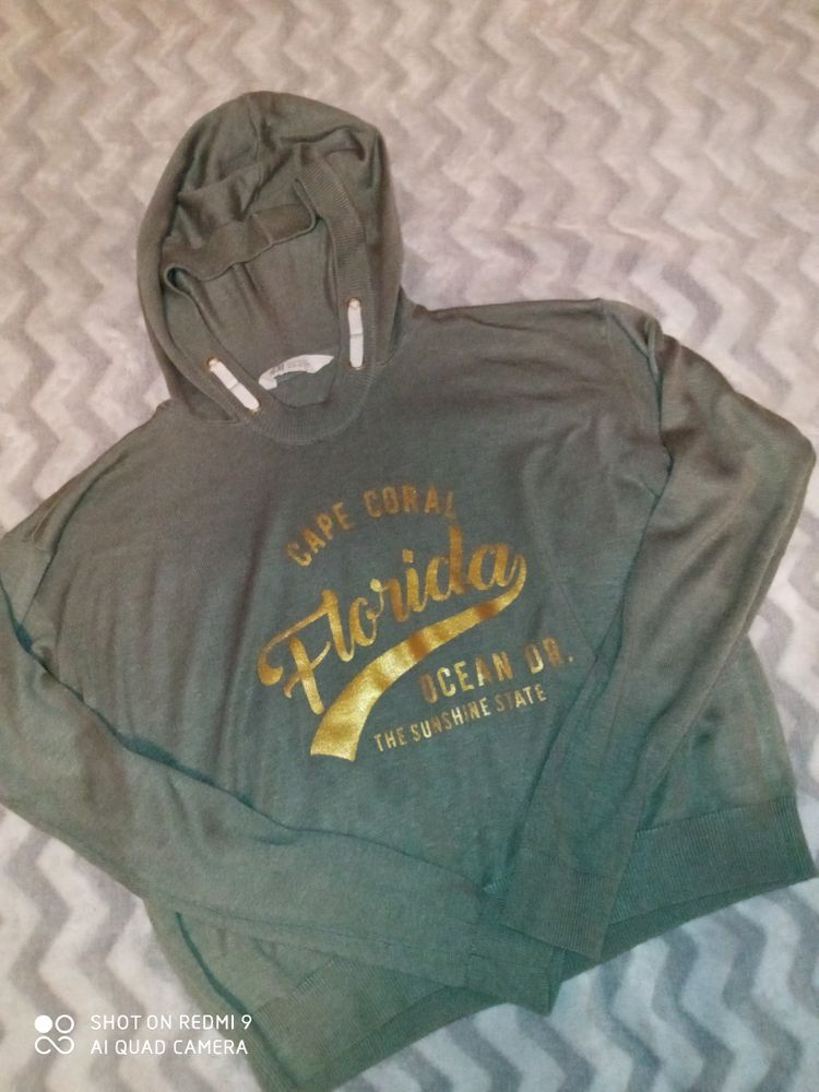 Джемпер с капюшоном, реально, как новая, одета 1 раз, если бы нечаянно не зацепились.. (. Р 158-162. 800 р.