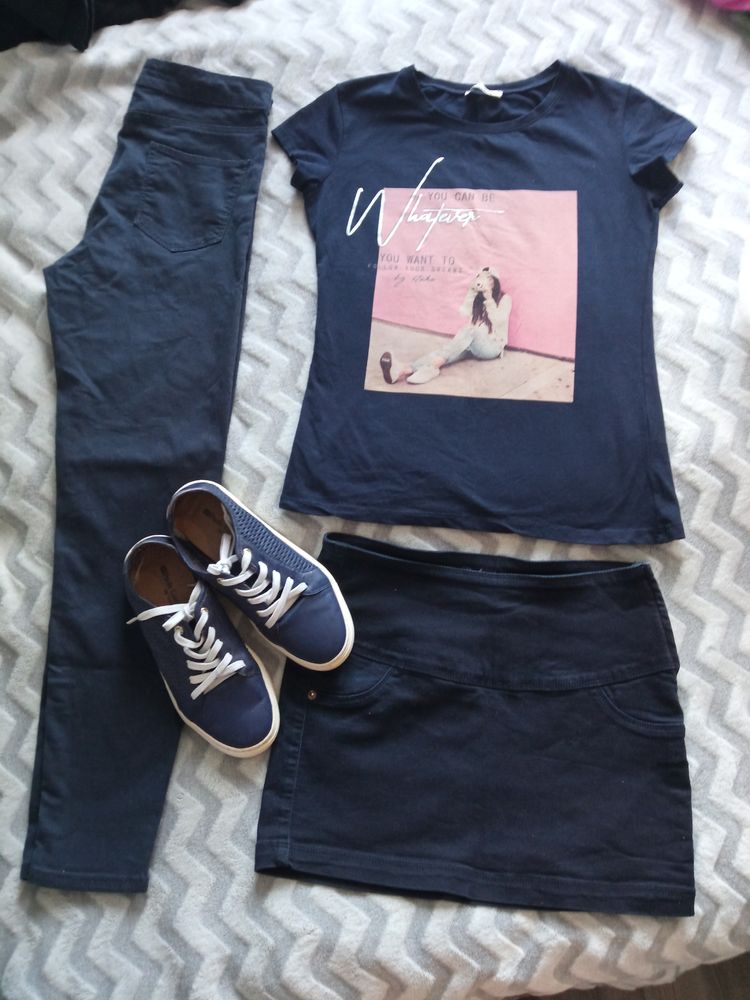 Футболка в идеале, в посте с женской одеждой есть, вообще на М, можно, так как тянется), и XS-S, 800 руб.
