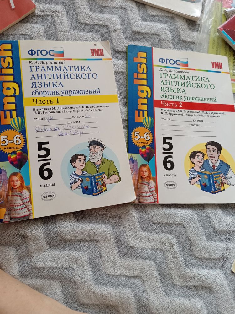 Грамматика англ. Языка 5-6 класс. 1 - ая часть где-то исписана, где-то чисто. 2 часть всего 3-4 стр заполнены из 92 стр.