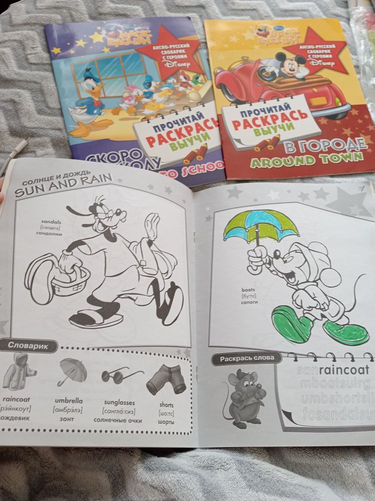 Очень классные англо-русские словарики- раскраски по 200 р. Формат А4.